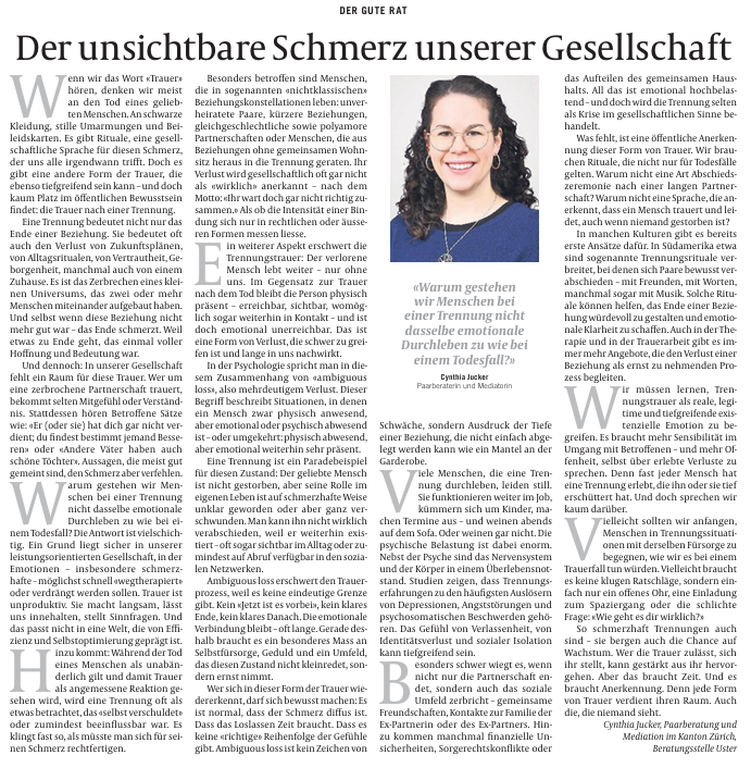 Dieser Artikel wurde im Stadt-Anzeiger Opfikon Glattbrugg unter der Rubrik «DER GUTE RAT» am 26.06.25 veröffentlicht.