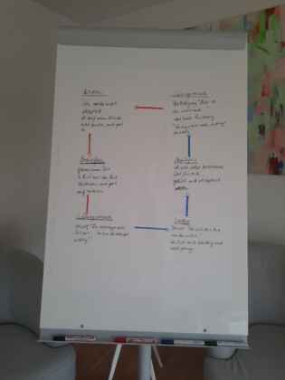 Es geht also darum, die eigenen Taten und Wirkungen zu betrachten und zu lernen, sich selber zu beruhigen, auf den anderen nicht nur zu reagieren, sondern proaktiv die Beziehung in eine gewünschte Richtung zu steuern. Dazu gehört es, den persönlichen Umgang mit Frustration zu reflektieren und im eigenen Inneren einen liebevollen Dialog zu lernen: Selbstreflexion und Selbstannahme.