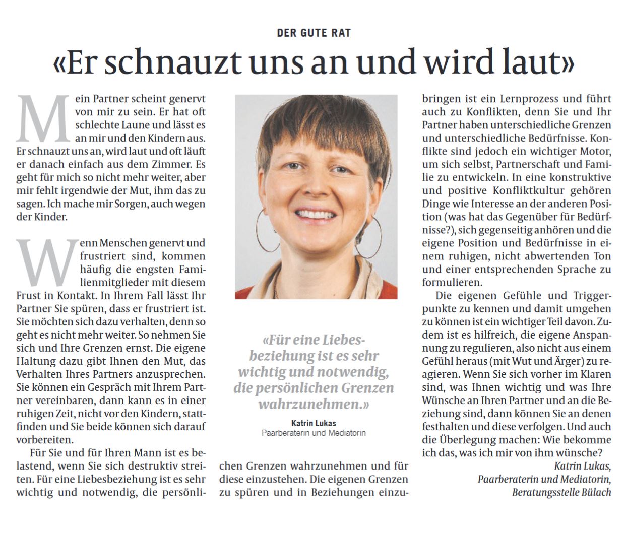 Katrin Lukas, Paarberatung im Kanton Zürich,