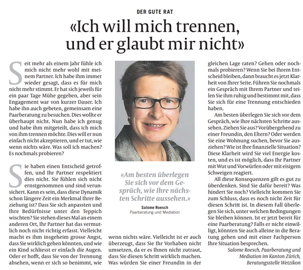 Salome Roesch, Paarberatung im Kanton Zürich,