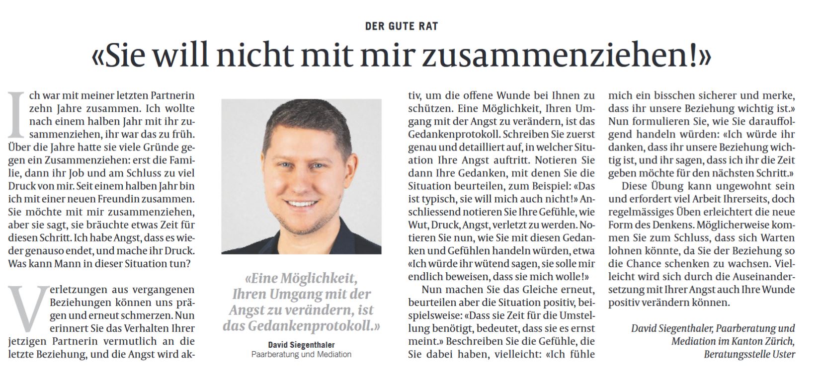 David Siegenthaler, Paarberatung im Kanton Zürich,