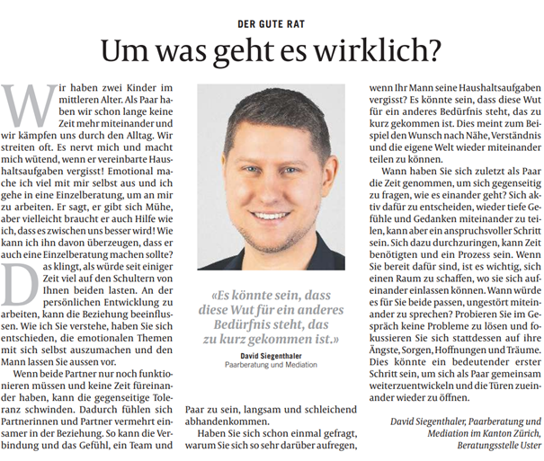 David Siegenthaler, Paarberatung im Kanton Zürich,