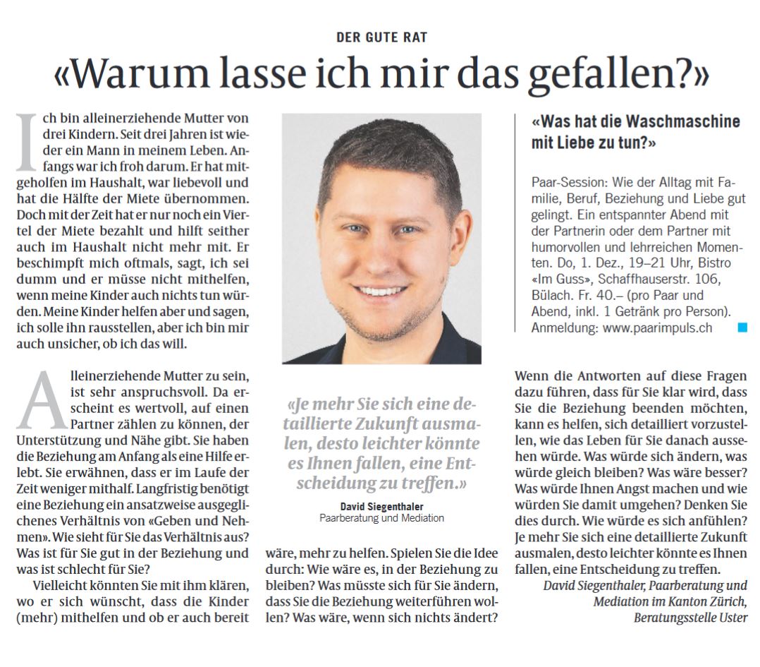 David Siegenthaler, Paarberatung im Kanton Zürich