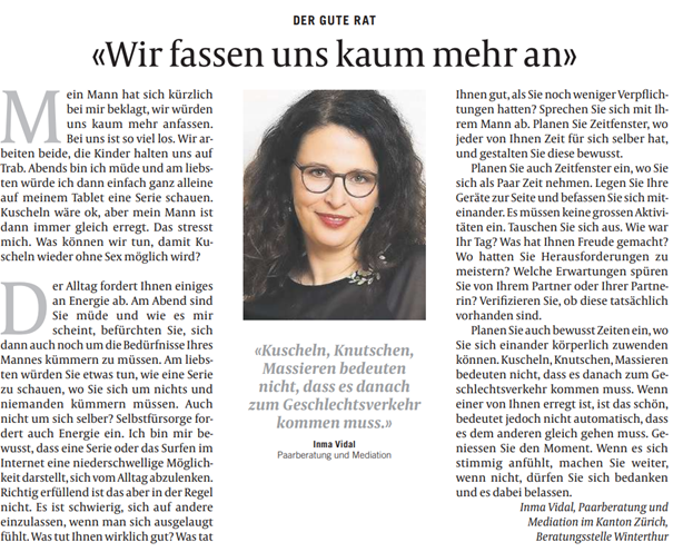 Inma Vidal, Paarberatung im Kanton Zürich, Beratungsstelle Winterthur